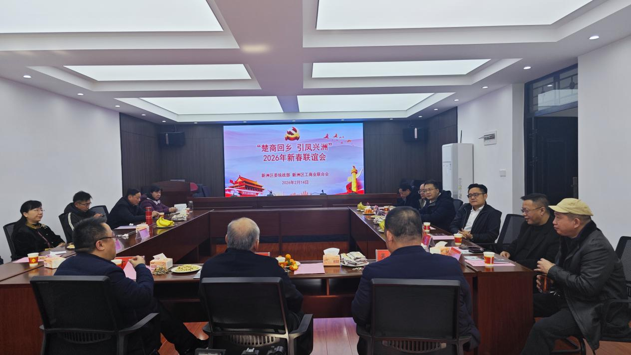 2月14日,武汉市新洲区举行“楚商回乡 引凤兴洲”2026年新春联谊会。来自海南、深圳等地的返乡民营企业家代表们欢聚一堂,共叙桑梓情深,共话新洲发展蓝图。区委、区政府、区委统战部、区工商联、区民宗局等有关部门负责人参加活动。