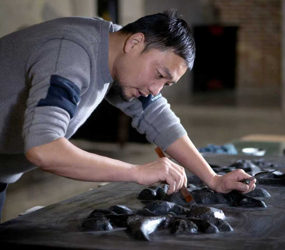 襄阳漆器博物馆馆长隗鹏正在制作大漆工艺。(采访对象供图。)