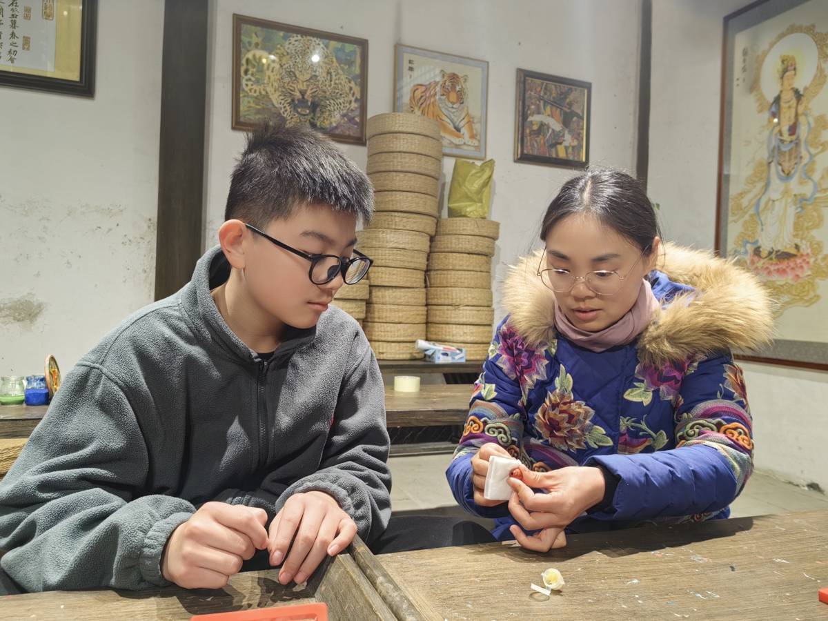 “这比玩手机有意思多了!自己做的漆珠特别有意义。”徐昊任举着自己的作品,爱不释手。