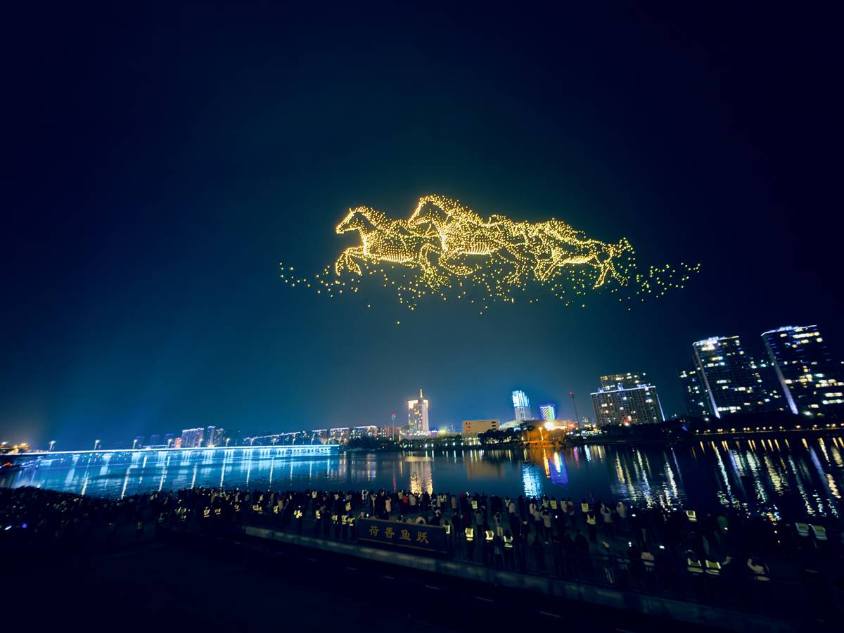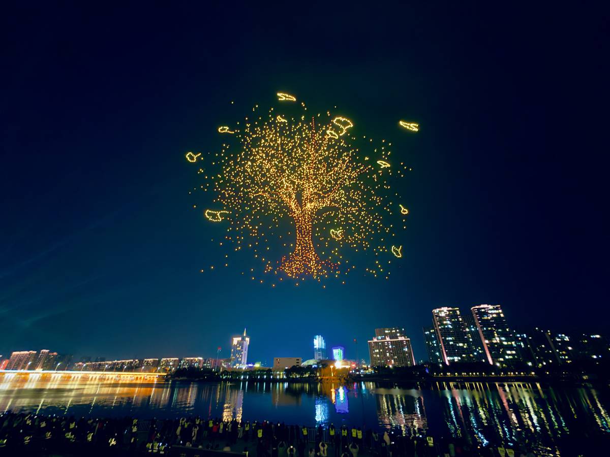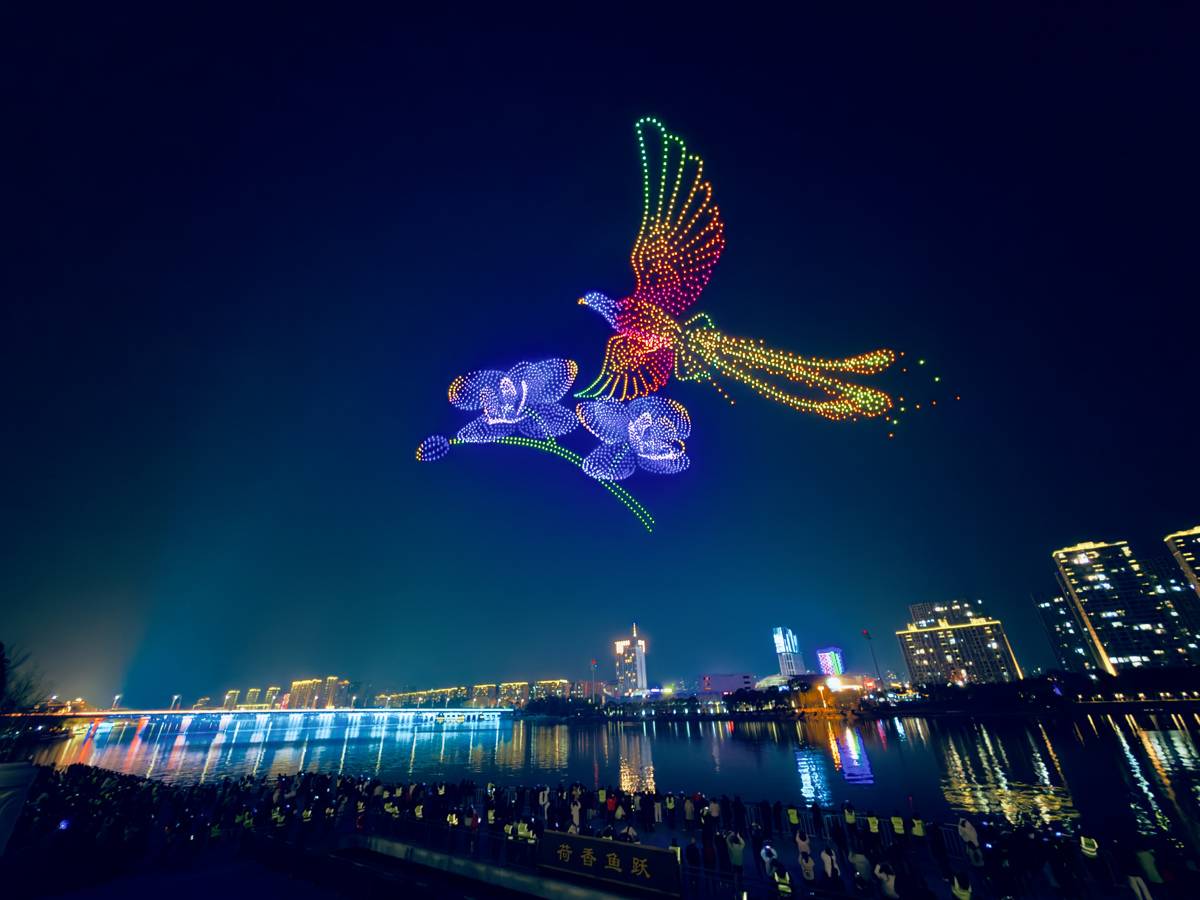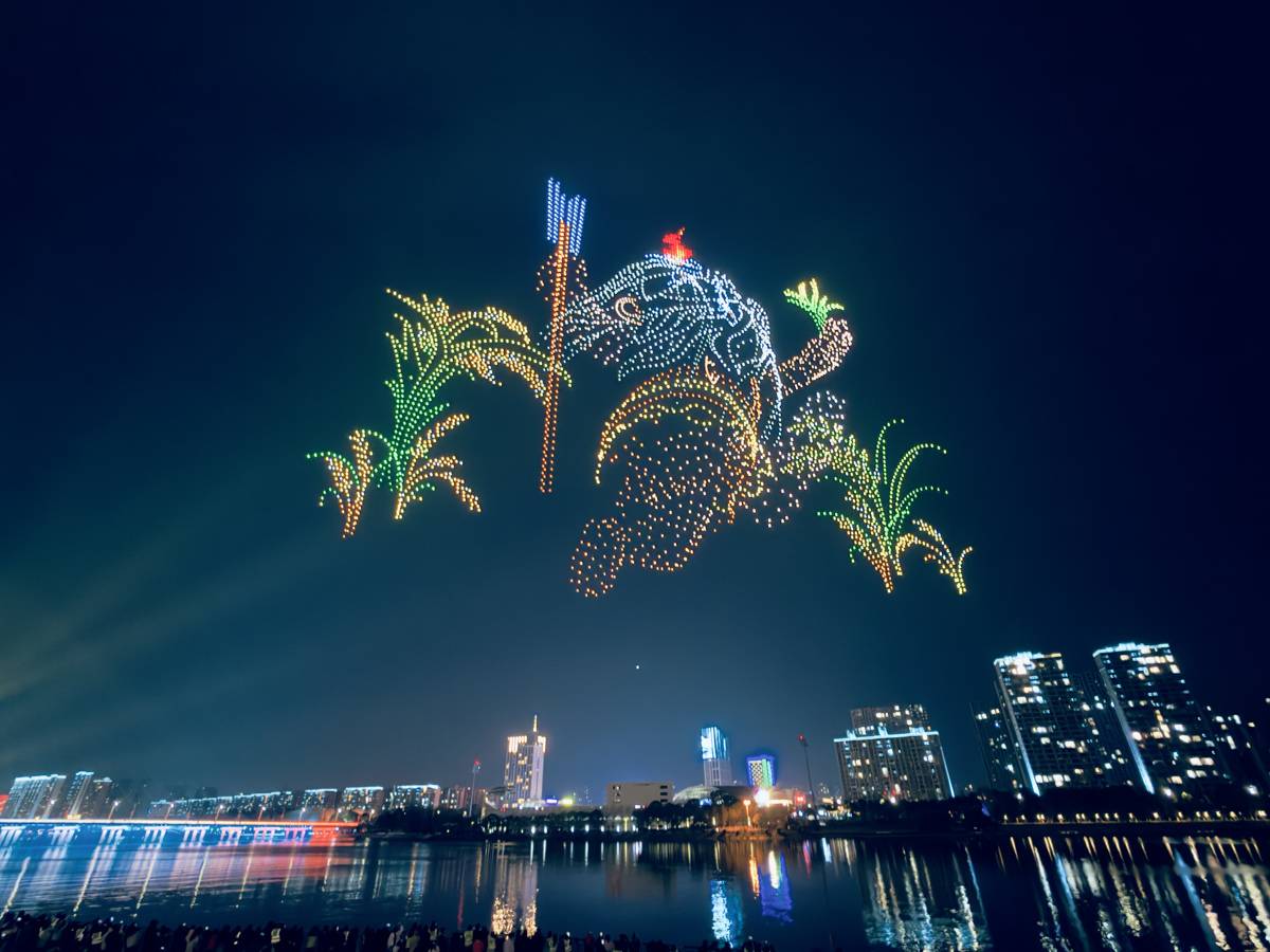 2月17日,正月初一,晚上8时许,“钟鸣楚天·云湖焕彩”2026年随州无人机烟花秀在白云湖夜空震撼启幕。
