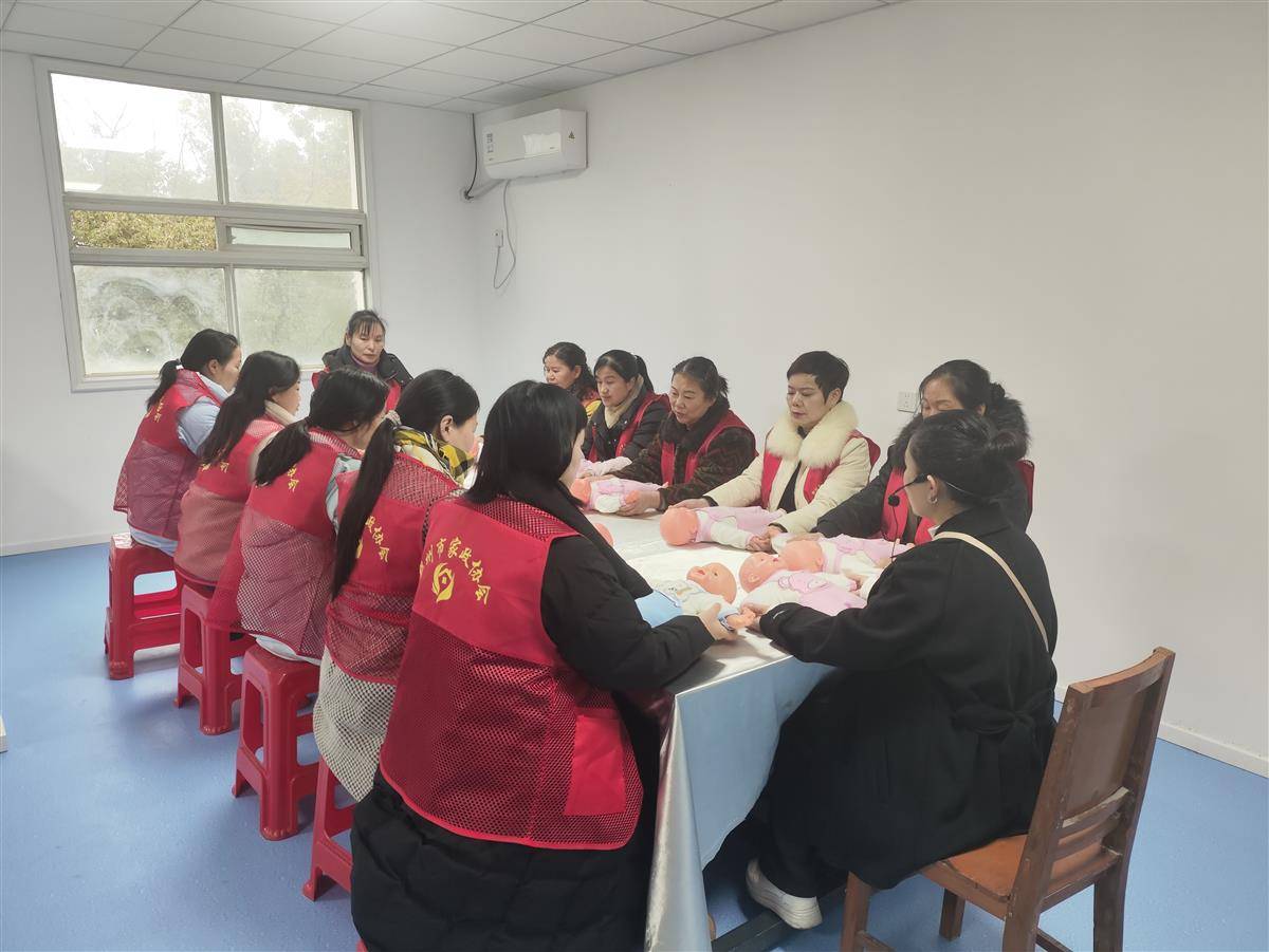 鄂州市鑫派职业培训学校教室内,鄂州市民柳婷正参加母婴护理专业的技能培训。