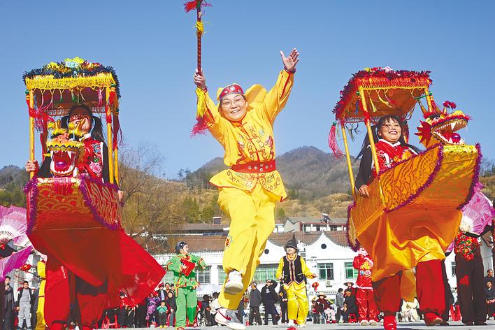 英山县温泉镇民俗表演。(视界网 王江 摄)