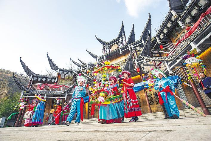 利川市龙船水乡景区,国家级非遗《利川灯歌》表演惊艳全场。 (视界网 张光陆 摄)
