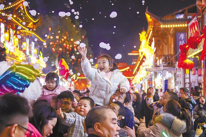 光影逐梦,喜乐满盈。龟山脚下、长江之畔,灯光秀璀璨启幕,以山为幕、以光为诗,与长江大桥、电视塔交相辉映,光影流转间勾勒江城浪漫,尽显时代活力;襄阳古城小北门广场,千盏孔明灯缓缓升空,暖黄光点汇聚成星河,承载着人们的新春祈愿,与青砖黛瓦、汉江波光构成绝美画卷。
