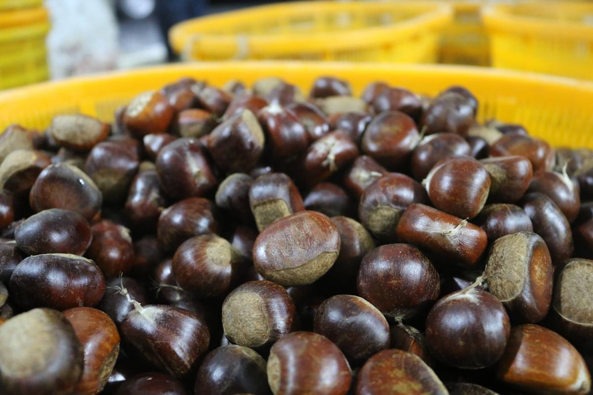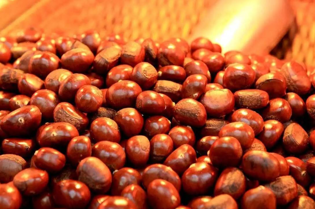 2015年前后引进“油栗”逐步取代“大红袍”。油栗个头中偏小,果皮深褐泛紫,有一层温润油亮的蜡光,皮容易剥,脂肪与含糖量高,淀粉低,煮熟后香甜软糯,冷却后不变硬,成为糖炒板栗的首选。但同样,畅销也显出了劣势:易生虫、难储存、产量偏低。