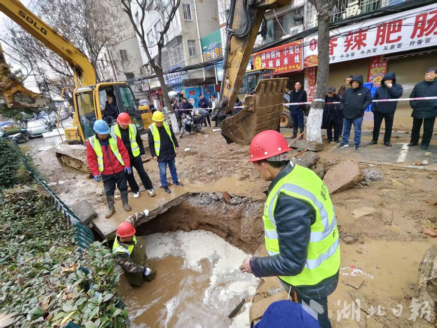 当天下午2:45,枣阳市嘉源水务有限公司一水厂泵房值班人员发现北城区供水压力急剧下跌。“压力异常!疑似爆管!”值班人员立刻通知管片员及抢修人员前往现场进行排查。几乎同一时间,供水服务热线接到市民的报修来电。经迅速排查,初步判定为民族路一条口径为600毫米的出厂供水主管道发生爆裂,该公司立即启动应急处置预案。