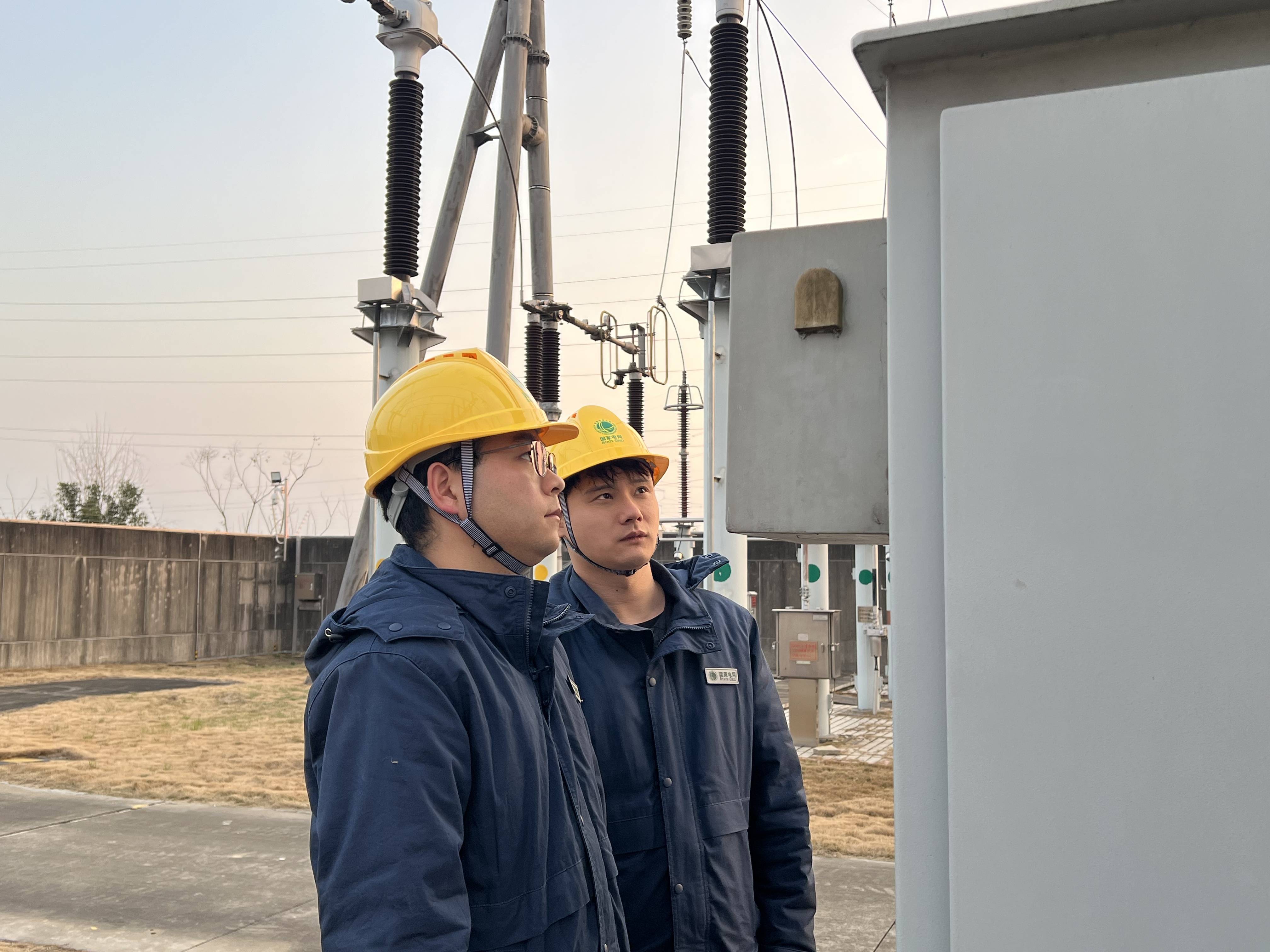 2月15日,±500千伏江陵换流站运维人员易琼洋、余鹏程正在检查220千伏江铺牵线232开关SF6压力