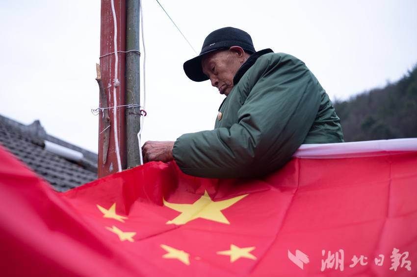 2018年,受益于国家精准易地扶贫搬迁政策,他从深山坳里的旧居搬入敞亮新房。从那时起,每逢节庆,一面五星红旗总会准时在小院中升起。从最初仅在节假日升旗,到如今让国旗长久飘扬,竹竿换过,国旗也因岁月洗礼而褪色更新,唯独这份赤诚,从未改变。