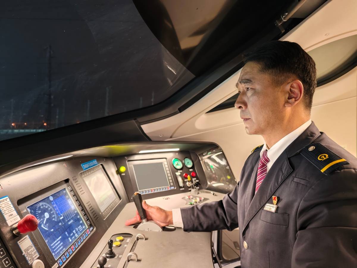 0时50分,完成外观检查的杨斌步入驾驶室。他逐一核对仪表,手指口呼:“各仪表显示正常!各参数设置正确!”1时整,他轻轻推动牵引手柄,这头两百多米长的“钢铁长龙”缓缓启动。