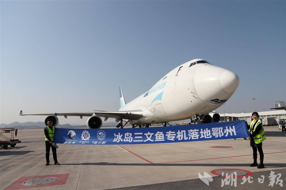 1月14日下午1时58分,冰岛三文鱼专机落地鄂州。(资料图片,湖北日报通讯员王星予摄)