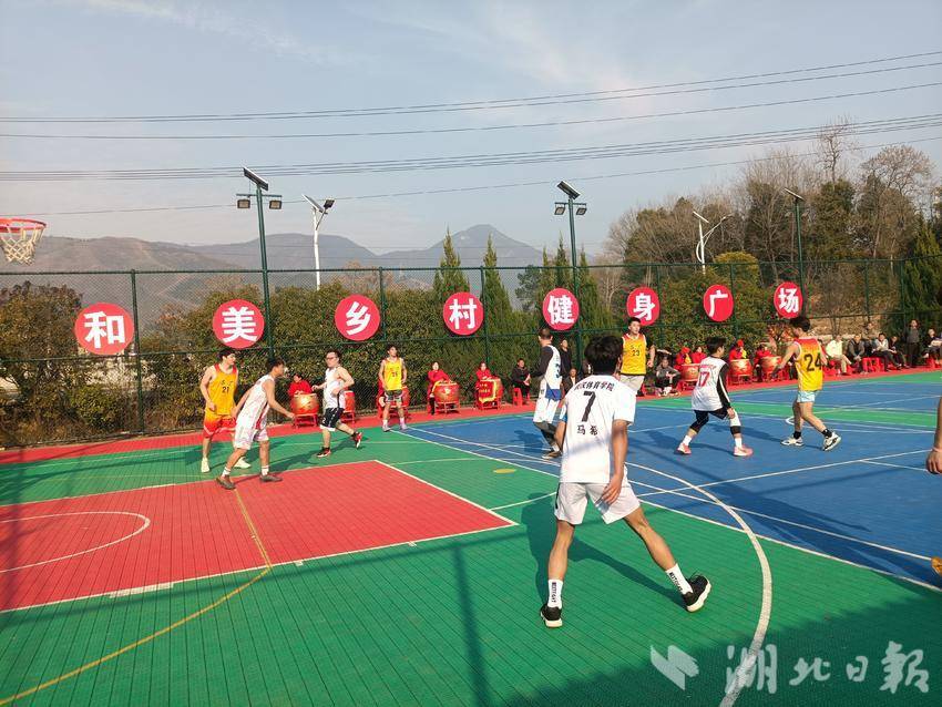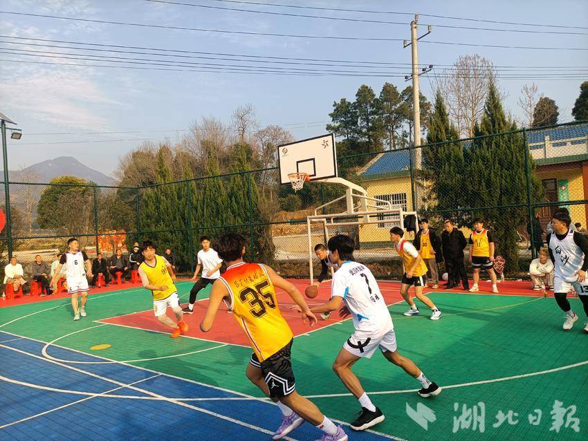 2月18日,大年初二,年味正浓。下午阳光普照,在阳新县白沙镇吕广村健身广场上,一场聚人气的篮球友谊赛正在热闹开场,给群众送上了别样的新春文化大餐。