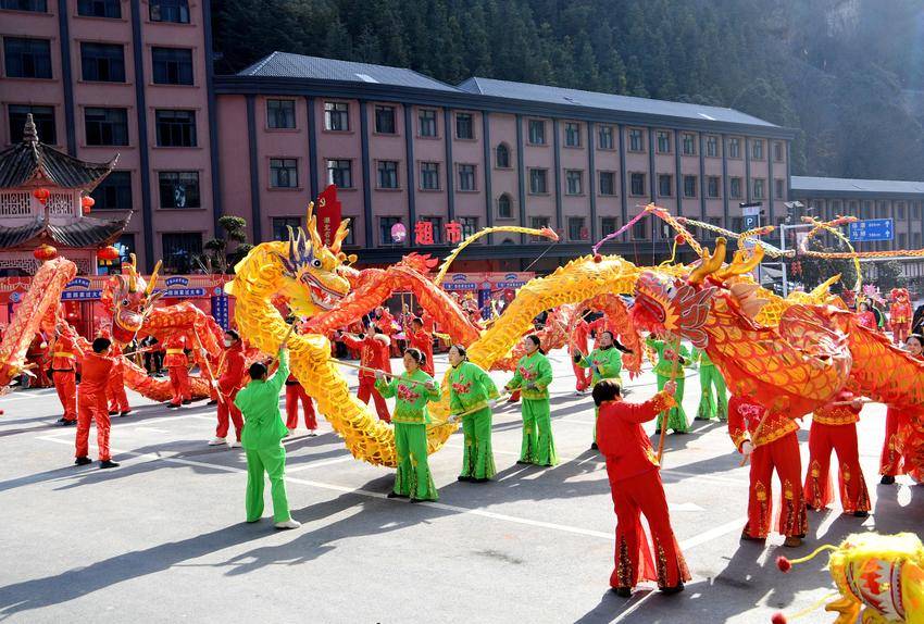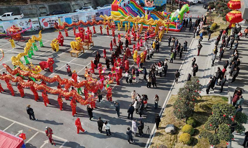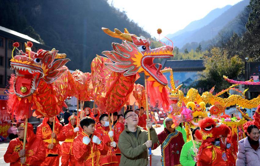 当日是正月初三,在保康县马桥镇尧治河村,舞龙舞狮、旱船等民俗表演精彩纷呈,人们走出家门,在浓浓的年味中欢天喜地过大年,红红火火闹新春。