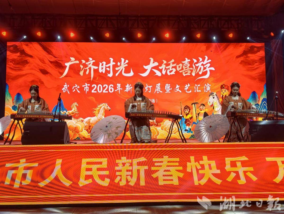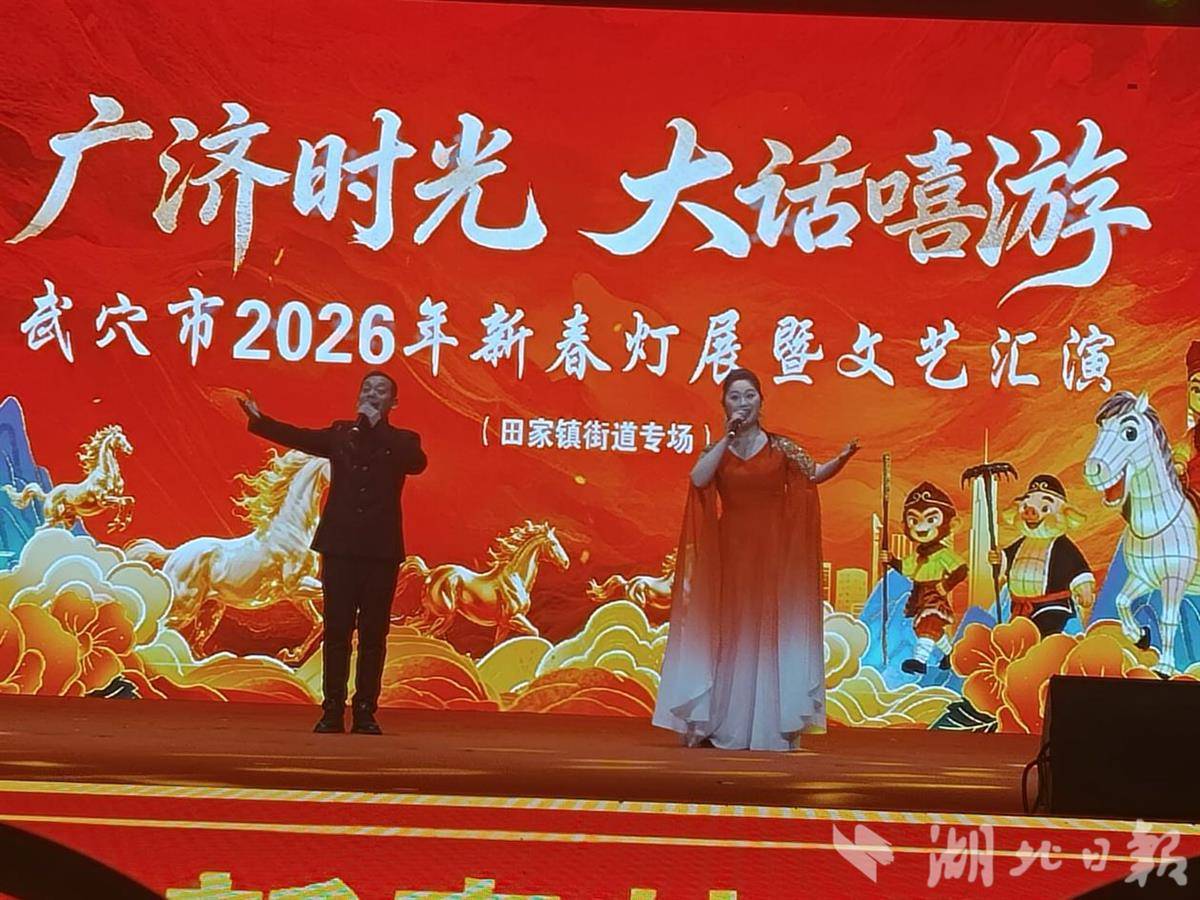 金鼓齐鸣,声动全城;花灯璀璨,光耀武穴。2月19日(正月初三)晚,“广济时光·大话嘻游”新春灯展暨文艺汇演田家镇街道专场活动在广济时光景区隆重举行,为当地群众与游客呈现了一场兼具传统韵味与时代气息的文化盛宴。