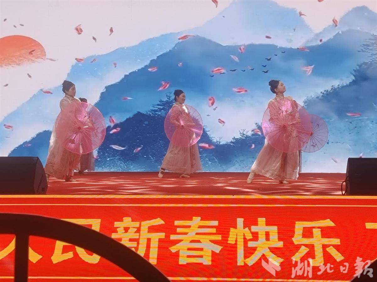 整场汇演节目形式多样、精彩纷呈。郭冲社区带来的锣鼓表演《欢聚一堂》气势磅礴,鼓点铿锵;武穴市实验小学田镇校区与盘塘校区联合演绎的舞蹈《春三月》,舞姿轻盈优美;马口社区带来的黄梅戏《从小爸妈就对我讲》婉转动人,在流行与戏曲的融合中传递家的温情。钱炉社区的古典舞《浮光》以翩跹身姿勾勒出一幅流动的光影画卷,韩垸村的《神州舞起来》则以充满活力的舞步抒发对祖国的热爱。