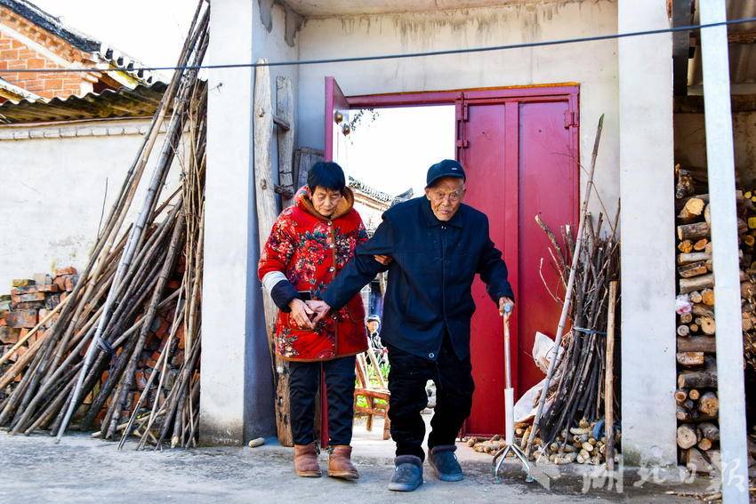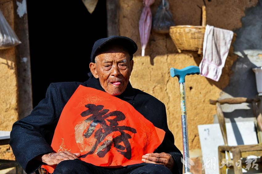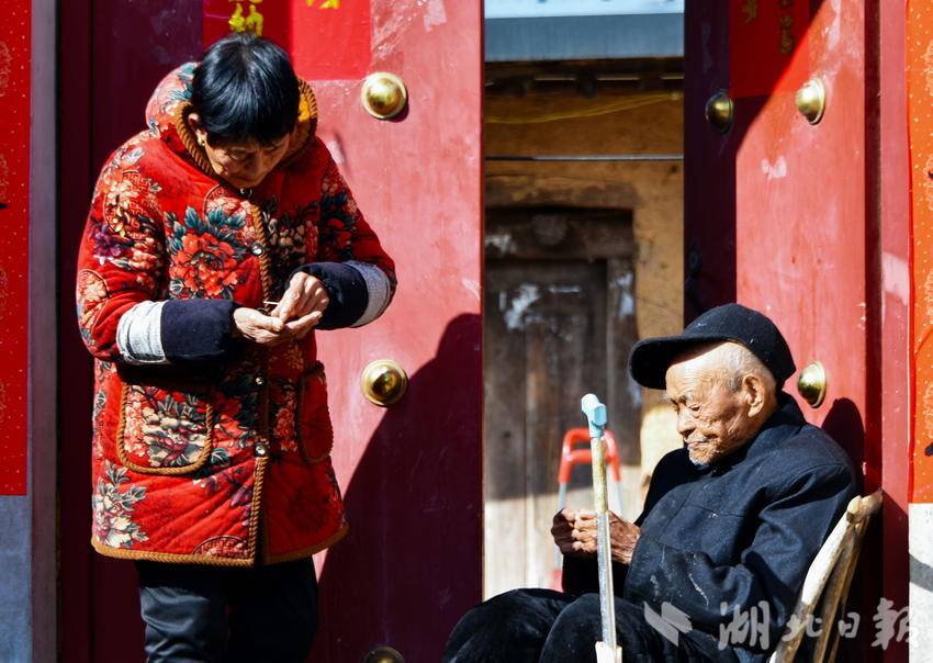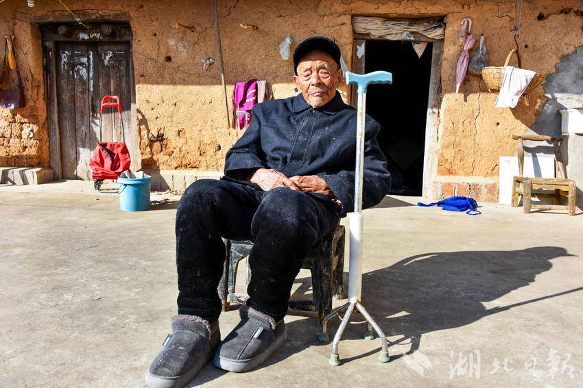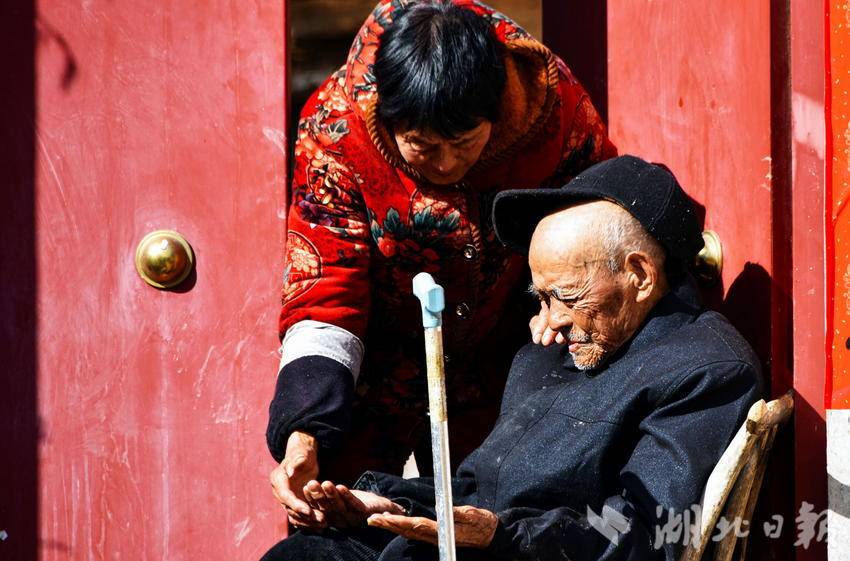 2月19日是大年初三,湖北省十堰市郧阳区刘洞镇杨河村6组,107岁村民曹书米在门口晒太阳。