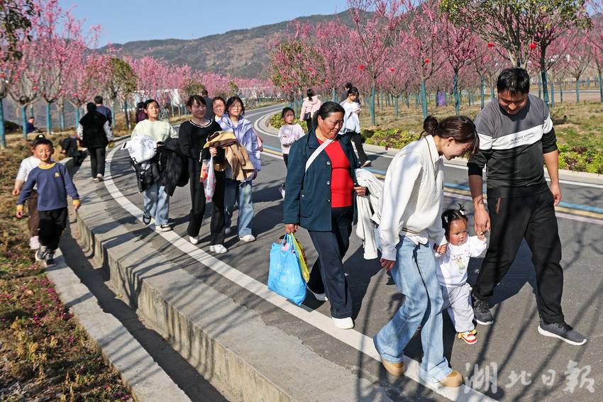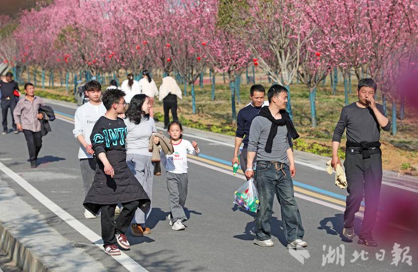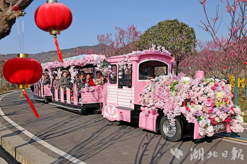 2月20日,十堰市竹山县上庸镇,圣水湖畔红梅绽放,吸引众多游人前来观赏游玩,尽享节日快乐时光。