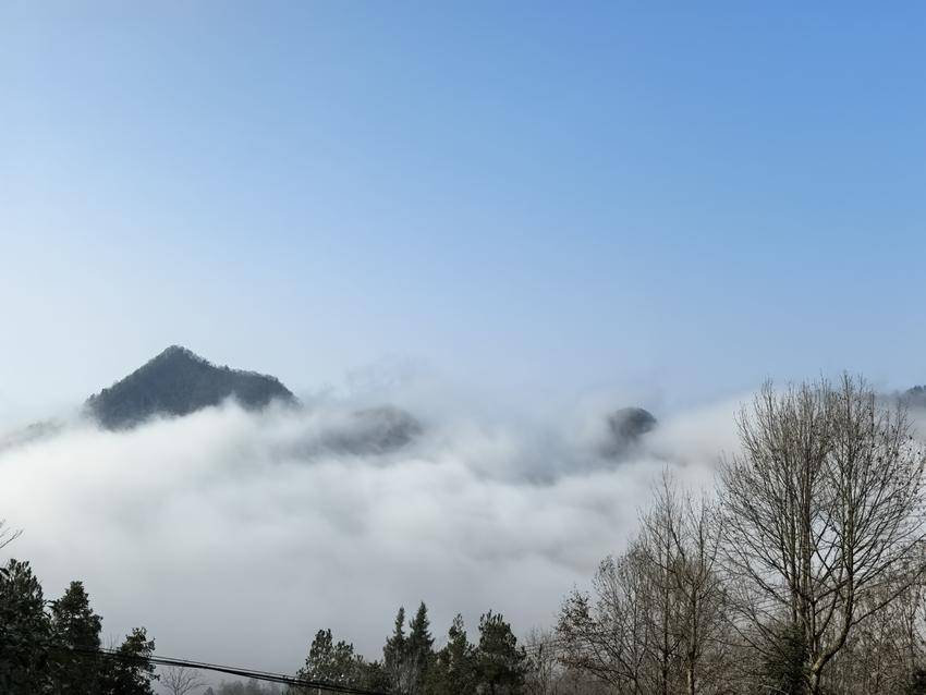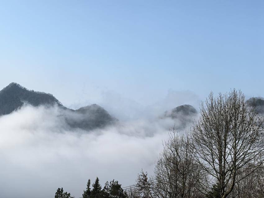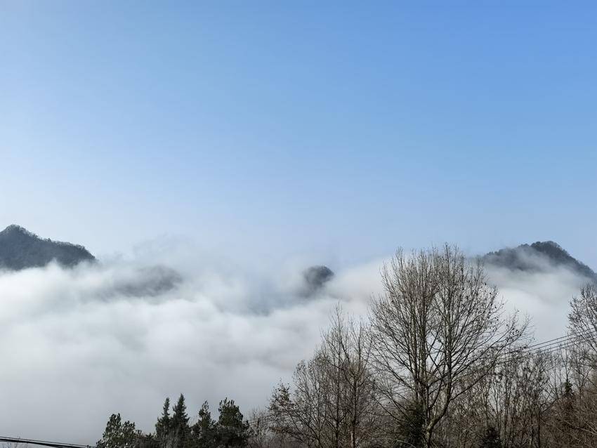 据了解,这种云海景观多出现于冬春交替的清晨,是由于昼夜温差较大,空气中的水汽遇冷凝结而成。随着太阳逐渐升高,雾气会慢慢消散,山峦也将重新显露其原本的轮廓。