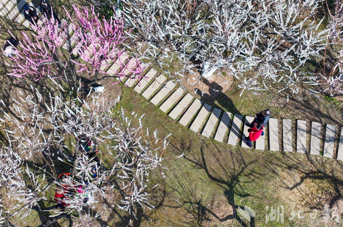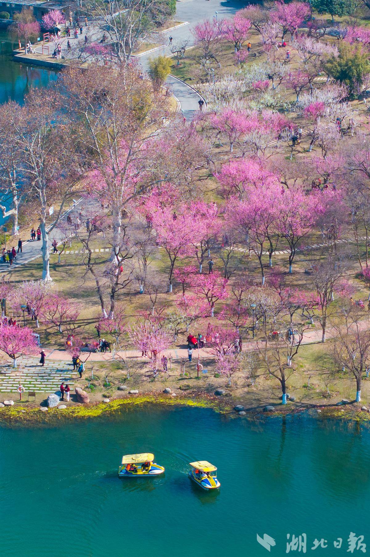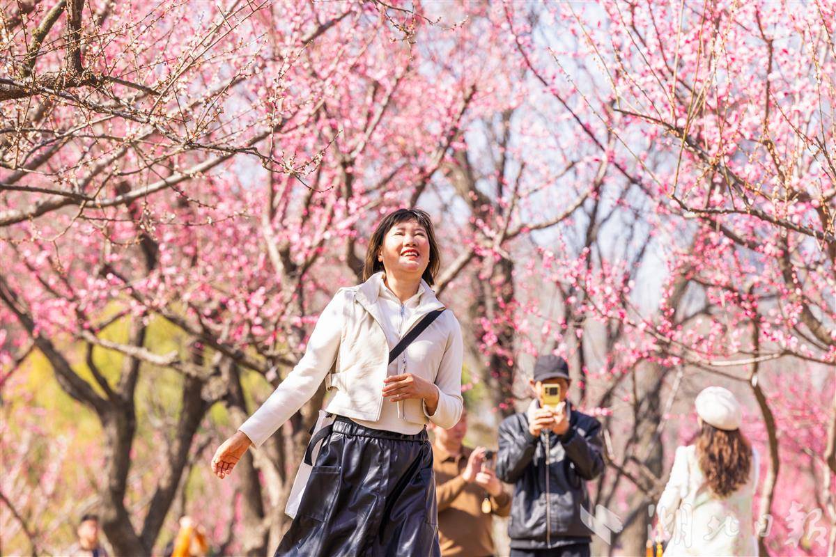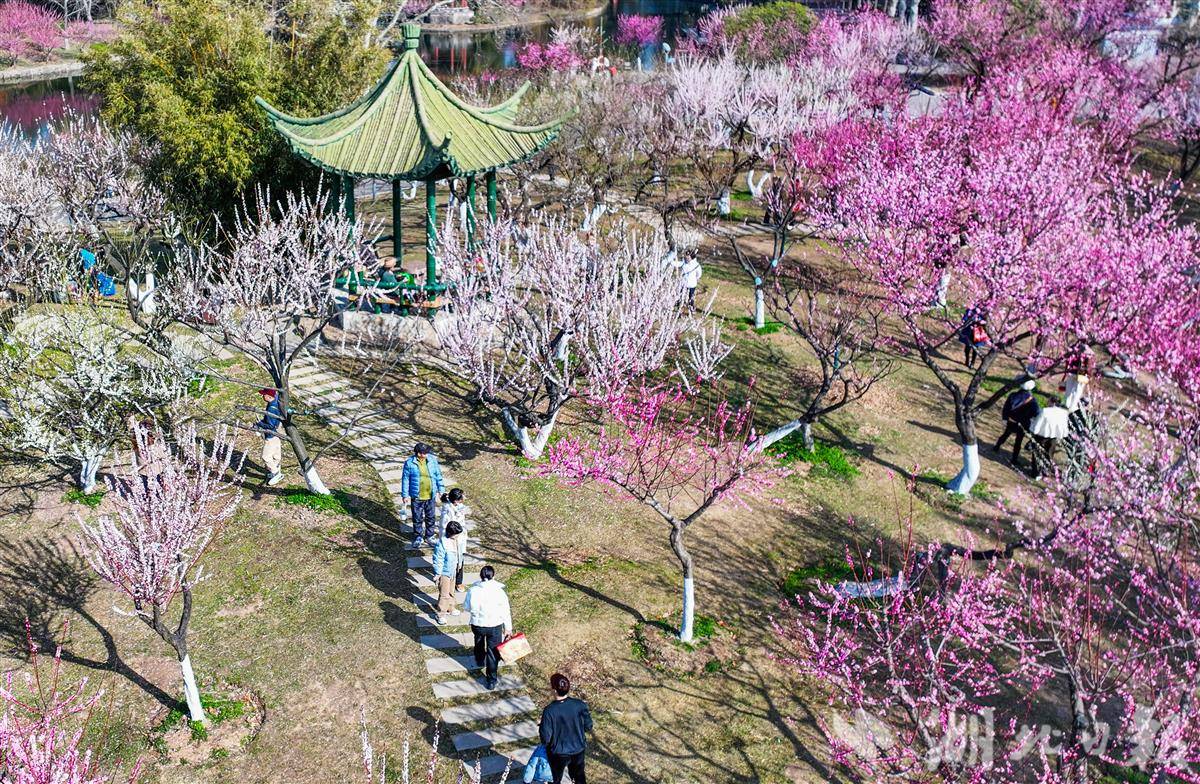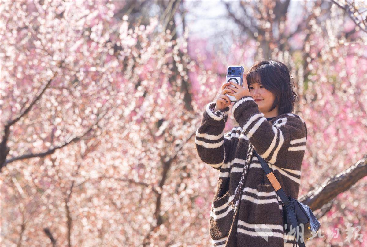 2月21日,武汉青山公园梅花竞相绽放,暗香浮动。春节假期,不少市民游客前来踏青赏梅、漫步拍照,在姹紫嫣红的梅林中亲近自然、放松身心,乐享春节假日美好时光,感受江城早春的盎然春意。(湖北日报全媒记者 薛婷 摄)