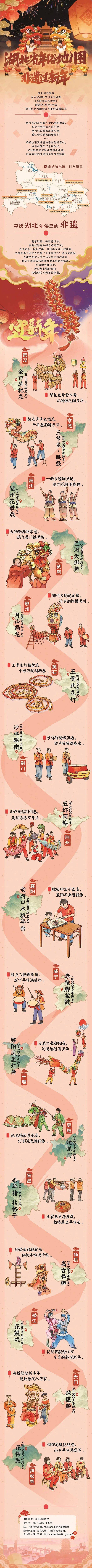 从武汉除夕灯火不熄的都市团圆,到恩施土家“地龙灯”的热闹喜庆;从荆州“五虾闹鲇”的灵动吉祥,到各地独具特色的迎春仪式,方寸地图之间,藏尽荆楚年俗精华。地图整合全省特色非遗年俗,以地理信息赋能年味传播,清晰呈现了这片土地沉淀千年的民俗传统,为大家春节期间寻年、过年、品年提供权威实用指南。