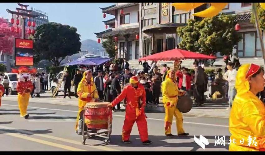 湖北日报客户端讯(通讯员李家林、张晓雪)2月20日,竹山县擂鼓镇组织百余名青年志愿者队伍,身着典雅汉服开展舞龙表演,亮相全县新春民俗展演,向全县人民送上新春祝福,以国风与民俗相融的精彩节目,点亮节日氛围,广受群众喜爱与好评。