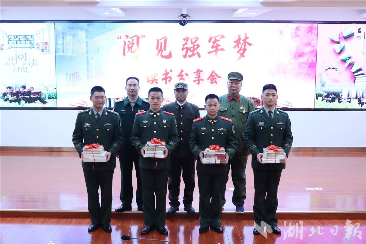 书香润心,家书暖心。在读书分享会现场,一段段来自家属的读书寄语视频,让书香与亲情交织相融。湖北省作协为官兵送上励志、强军、党史类读物,鼓励官兵以书为友、以学促行,用知识赋能成长、锤炼过硬本领、践行强军使命。