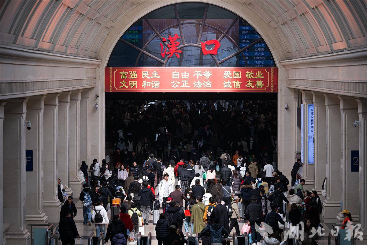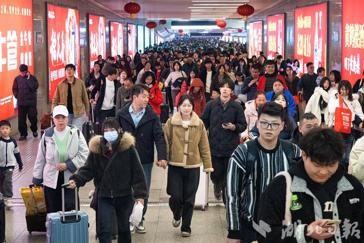 2月22日,正月初六,随着春节假期进入尾声,武汉铁路迎来返程客流高峰。汉口火车站出口廊道内人头攒动,旅客们拖着大包小包抵达武汉,准备收拾好心情,元气满满地迎接新一年的工作。