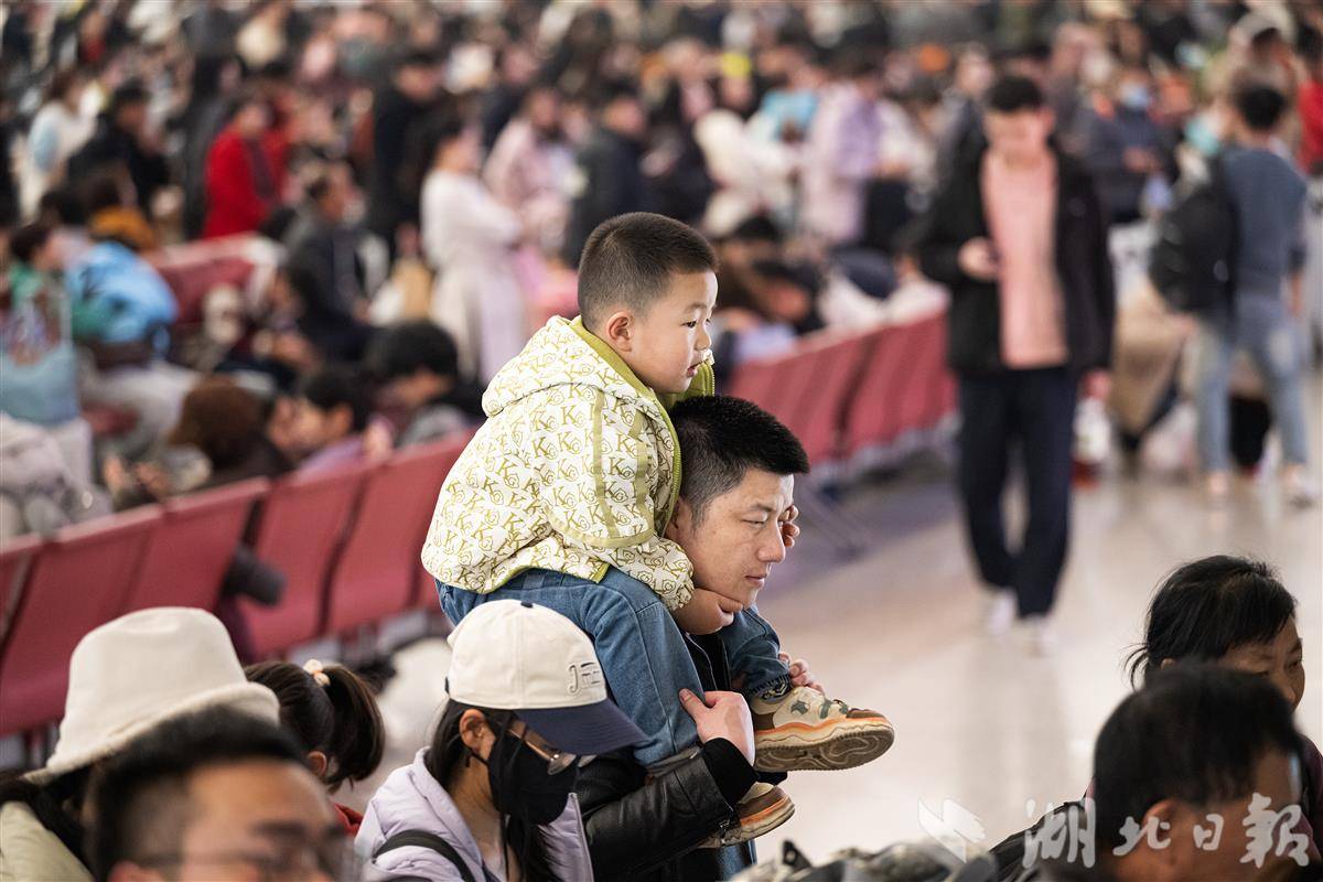 2月22日,正月初六,一对父子准备在汉口火车站乘车返程。(湖北日报全媒记者 任勇 通讯员 秦涛 宋萍 摄)