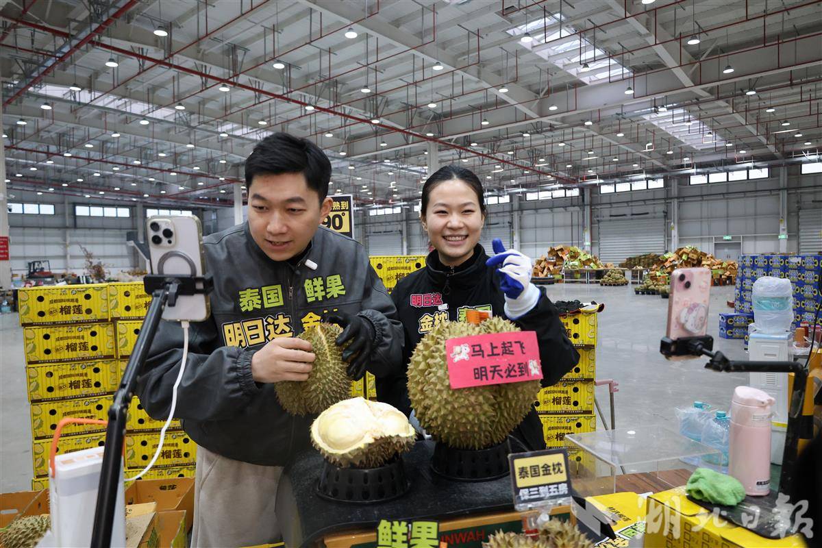 新春记者走基层|直播卖榴梿月入5万。湖北日报全媒记者周鹏摄