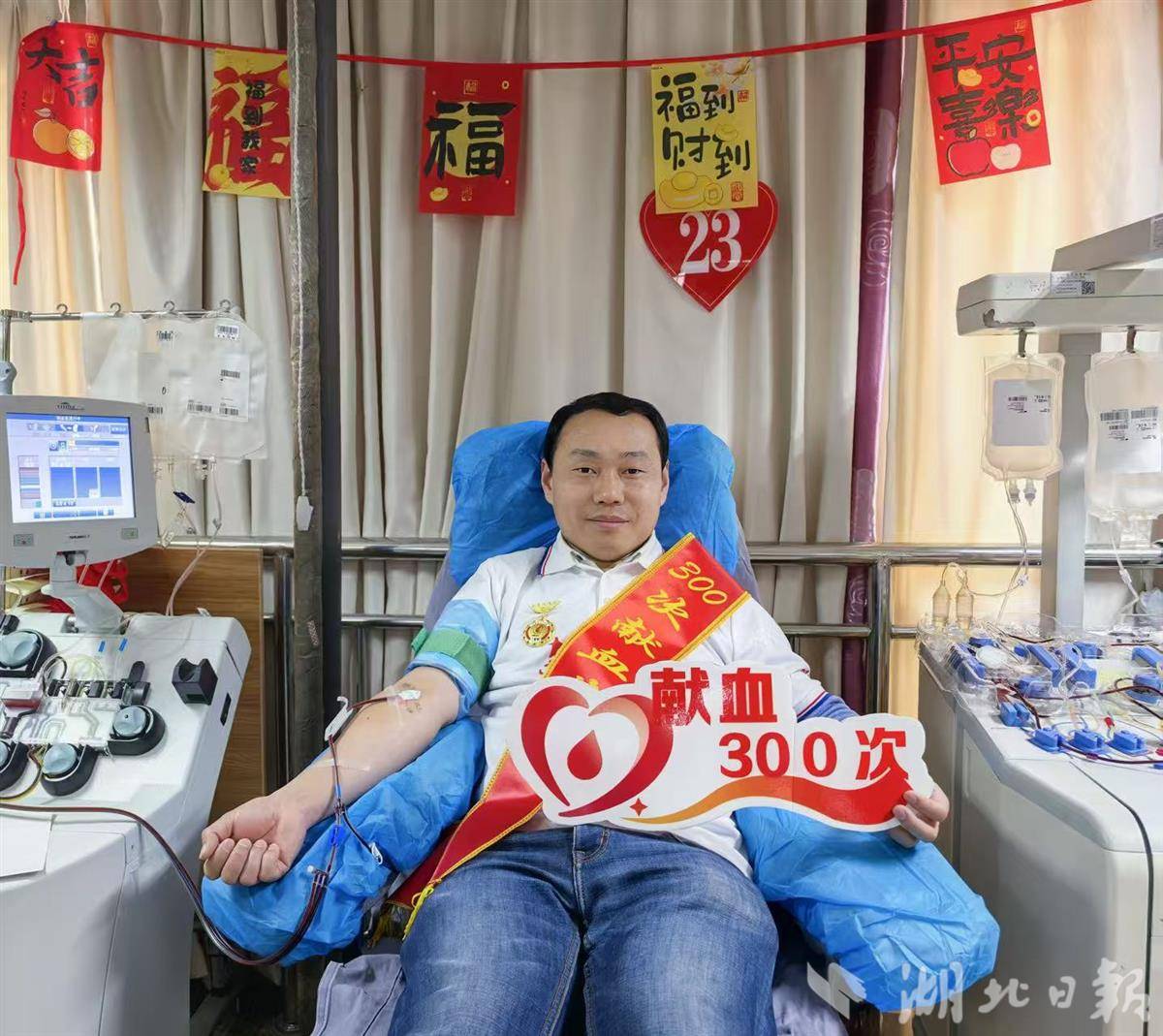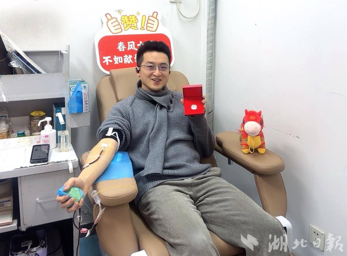 在众多献血者中,定期成分献血者王林格外引人注目。大年初一晚上,他专程从上海奔赴武汉,初二一早便在血液中心成分献血科完成个人第300次无偿献血,这也是他第3次来汉捐献成分血。“武汉的献血服务既专业又热情,每次来都像回家一样温暖。”王林表示,特意选择新春来汉完成这一重要时刻,既是留下美好回忆,也是为患者送上“生命礼物”,助力他们早日与家人团圆。