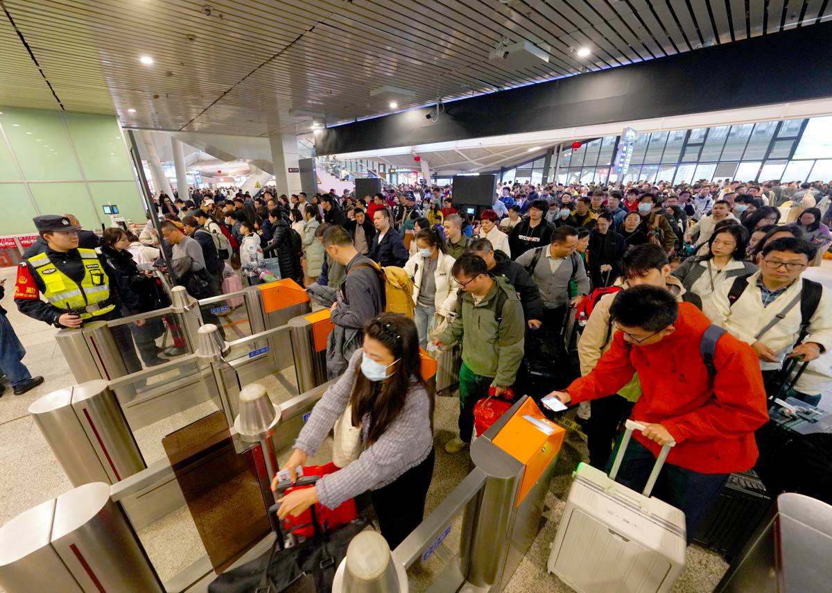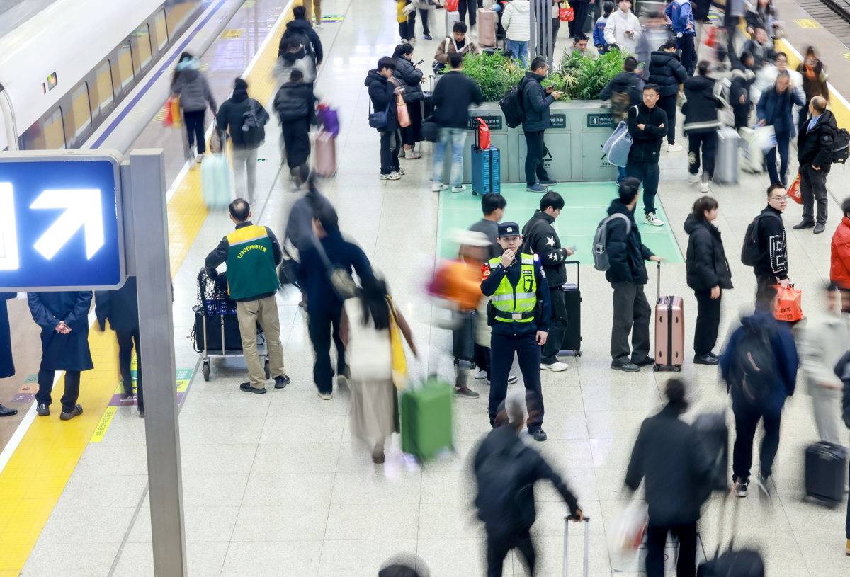 2月23日,正月初七是春节假期最后一天,武汉铁路迎来返程客流最高峰,武汉客运段当日开行列车达327.5对,创历史新高,平均不到2.2分钟发送一趟。当天,武汉铁路部门预计发送旅客106万人次。其中,武汉站连续两天发送旅客超16万人次。(湖北日报全媒记者 魏铼 通讯员 李鹏翔 安茹芸 王玉琪 摄)