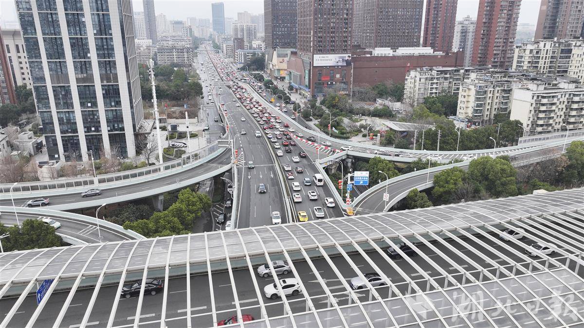 受节后通勤车流集中影响,武汉二环线珞狮路至街道口等部分路段7:30-8:30期间出现车流量增大、行车缓慢现象,但通行秩序良好。交管部门提醒:本周仍属节后车流调整期,建议优先选择地铁等公共交通出行。(湖北日报全媒记者 陈少哲 摄)