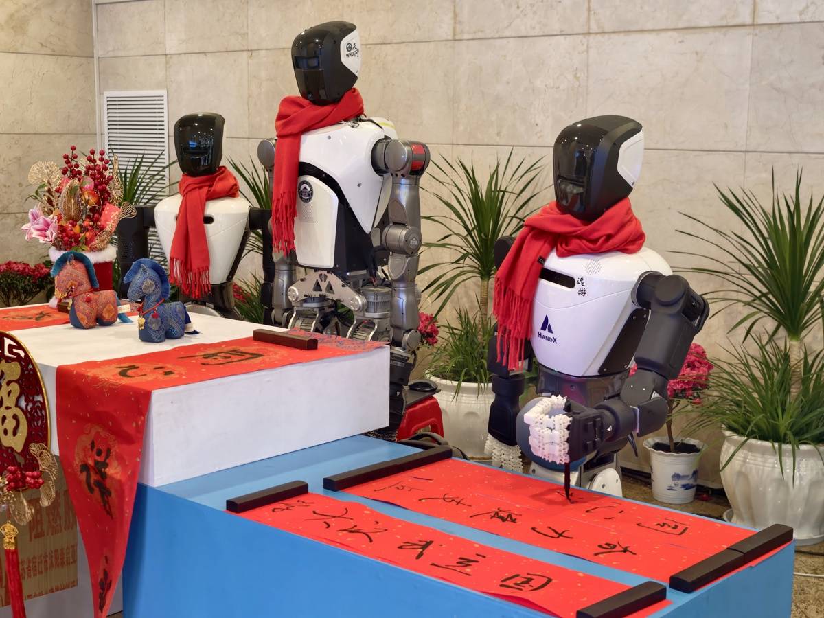“奋力建支点,同心谱新篇。”2月24日,在“新春第一会”现场,面对即兴提出的对联创作请求,天问团队的远游机器人挥毫泼墨,不到两分钟,一副笔力遒劲的对联跃然纸上。