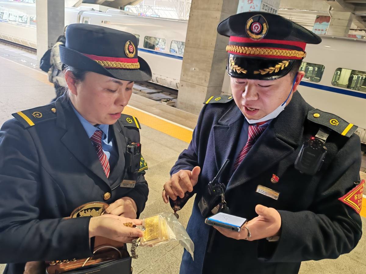 站台值班员肖棋闻声而动,立即启动春运失物紧急处置预案。他一边通知“心连心”服务台人员赶赴指定车厢,一边联系铁警到场见证,自己则手持记录仪等候。