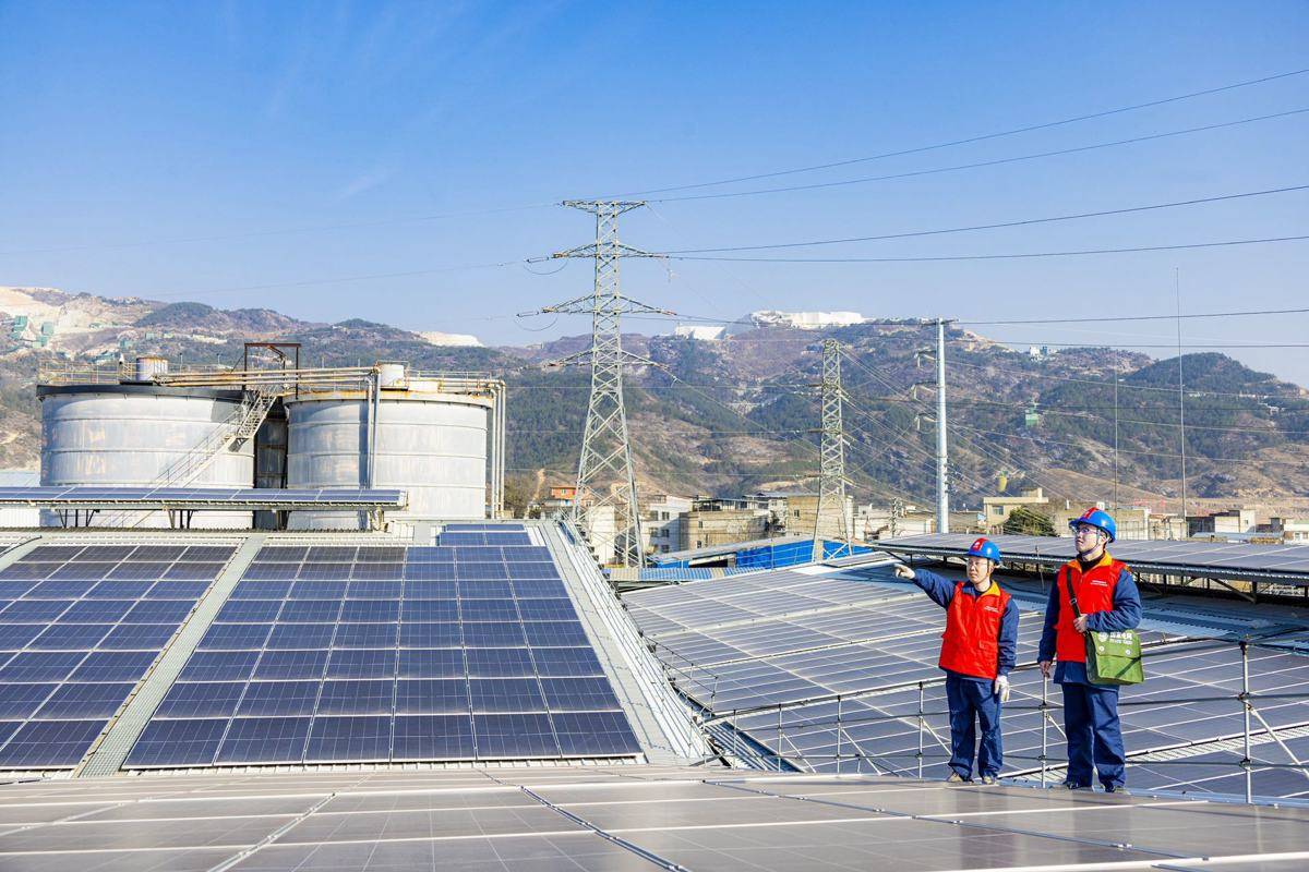 国网黄冈供电公司运维人员在马畈村光伏电站开展用电安全检查及设备巡检。徐世雄摄