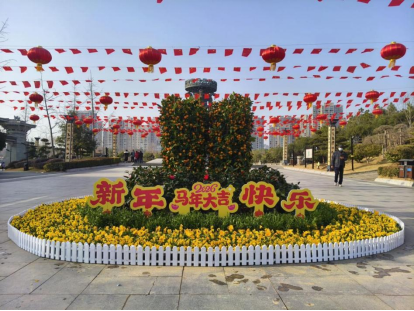 随州市积极组织城区主要公园开展春节氛围营造,全面提升公园景观品质和文化气息。文化公园在东、西两区悬挂灯笼150余个,主入口结合金钱橘、茶花等时令花卉打造景观小品两处,摆放草花5000余盆,营造出既具传统韵味又富有童趣的节日景象。