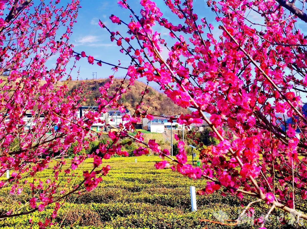 红梅吐艳迎宾客,绿茶飘香醉人心。八方友人,踏春而来,赏梅景、品香茗、游田园,共赴一场山水与茶香交织的诗意之约,共览边关茶乡的如画风光。