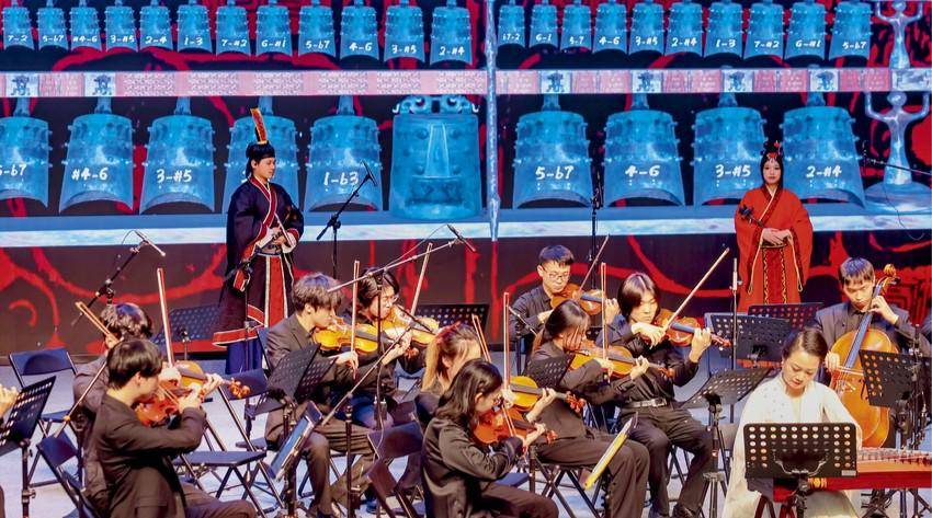 “数智编钟”的惊艳亮相,正是武汉音乐学院(简称武音)以党建为引领,深耕艺术与科技交叉学科结出的硕果。近年来,学院党委以“突出高质量党建引领高质量发展,突出服务国家和湖北战略需求促进内涵式发展,提升人才培养质量,提升办学治校水平”为工作方针,将党的建设贯穿学科建设的全过程,走出了一条“党建铸魂、学科筑基、创新赋能”的特色路径,奏响艺术与科技的时代强音。