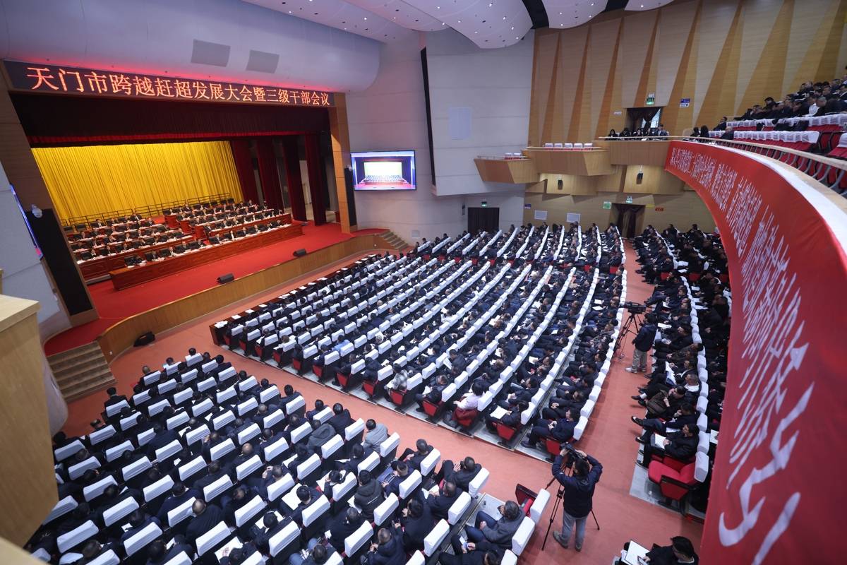 天门市跨越赶超发展大会暨三级干部会议。(通讯员 刘银斌 摄)