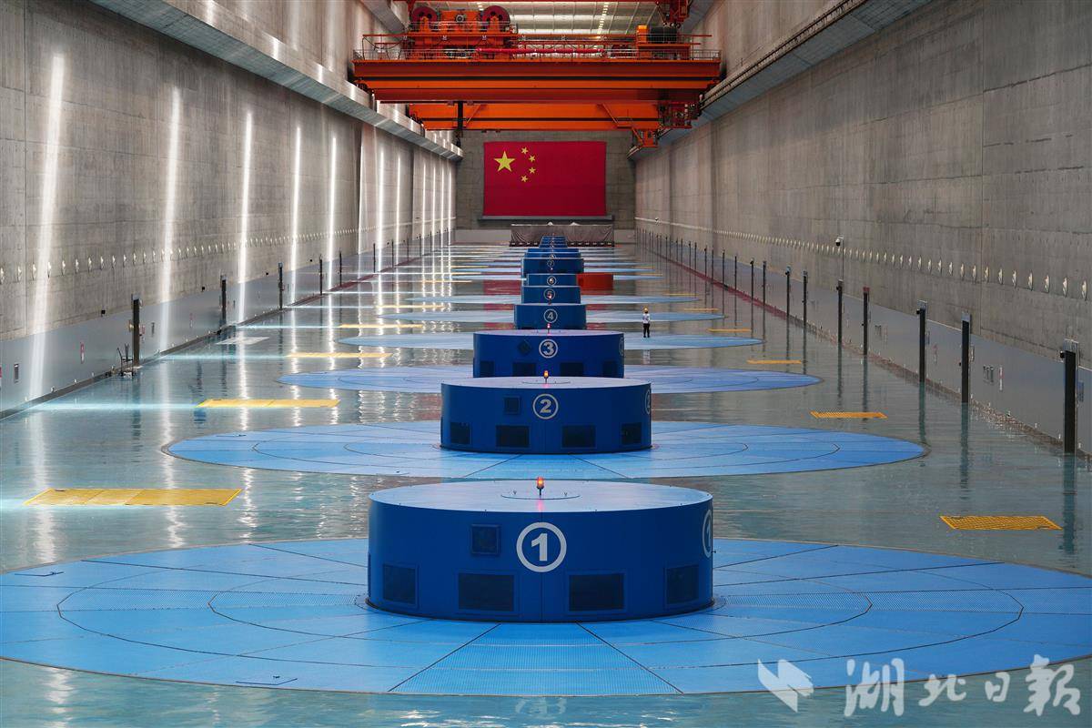 从金沙江下游的乌东德、白鹤滩、溪洛渡、向家坝,到壮阔的三峡工程,再到万里长江第一坝葛洲坝,清洁能源走廊跨越1800公里,水位落差超900米,安装110台水轮发电机组,总装机容量7169.5万千瓦,占全国水电装机容量的近五分之一。在这条“走廊”里,六座大型水电站呈梯级排布,实现“一滴水发六次电”。据测算,1立方米的长江水流过三峡大坝,能发电0.25千瓦时,在走廊中多次做功,发电量可达2千瓦时。