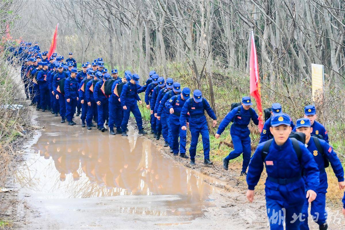 “一二一!一二一!”嘹亮的口号声回荡在林间,在大军山下,湖北消防救援机动总队新训支队组织全体新消防员开展为期两天的野营拉练,此次拉练共设置了两天的科目,途经山地、乡村、城市道路等复杂路段,指战员全程携带个人防护装备和应急物资,徒步行军与专业课目深度融合,穿插开展识图用图、水泵操作、野外生存等多个实战课目教学训练,做到边行军、边练技、边强能。旨在检验新队员的体能耐力和应急处置能力,帮助新队员快速适应消防救援队伍的训练节奏,夯实岗位任职基础。