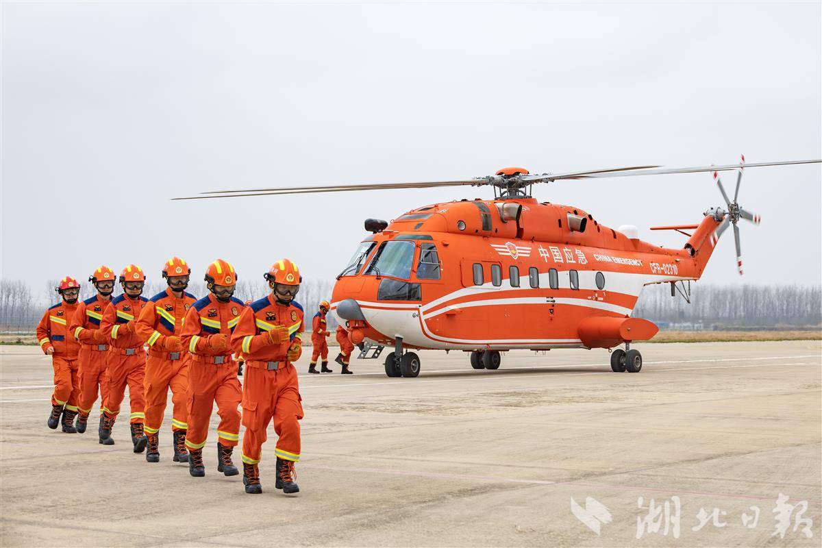 在国家华中区域应急救援中心的直升机训练场上,昆明航空救援支队靠前驻防的直-8型救援直升机稳稳降落,旋翼高速旋转激起阵阵气流。随着指挥员一声令下,参训的武汉机动支队指战员身着专业装备,在机组安全员的引导下,有条不紊地开展直升机人装投送训练,展现出精湛的专业技能和昂扬的精神风貌。