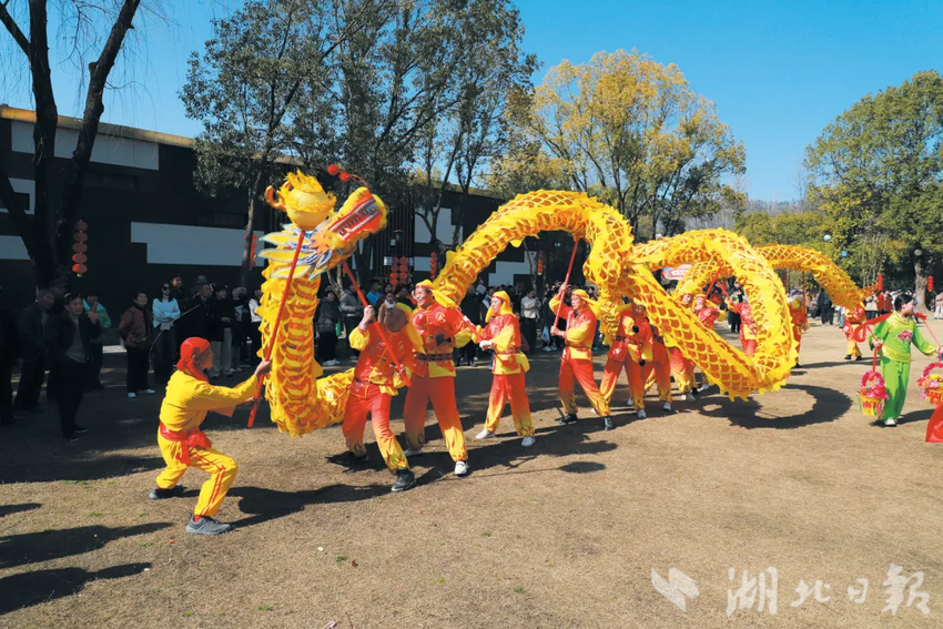 柏林镇柏林村的新春,是非遗民俗点燃的热闹。正月初三至初六,知雨轩田园综合体内锣鼓声天天响起,草把龙灯盘旋腾跃、舞狮憨趣互动、划彩船摇曳生姿,非遗表演引得现场人头攒动。游客举着手机记录精彩,孩童踮脚触摸狮头,白发老人驻足回味,来自荆州的游客王先生直呼“这才是真正的年味儿”。村里不仅组织了几十场非遗表演,还联动田园综合体办起年货节,让非遗文化活态传承,而这份热闹背后,是柏林村乡村振兴的扎实成果,盘活闲置资产、发展特色农业的举措,非遗烟火气与乡村新貌相融共生。