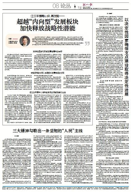 中共中央“十五五”规划纲要建议提出,鼓励各地发挥比较优势、各展所长。当前,我国区域发展总的格局已经确立,重大经济板块、经济带、城市群、核心都市圈的引领作用持续凸显,成为推动高质量发展的核心引擎。在这一格局下,类似江汉平原这样的次一级经济区作为区域发展的重要补充和潜力所在,是未来释放发展潜能、优化空间布局的重要抓手。