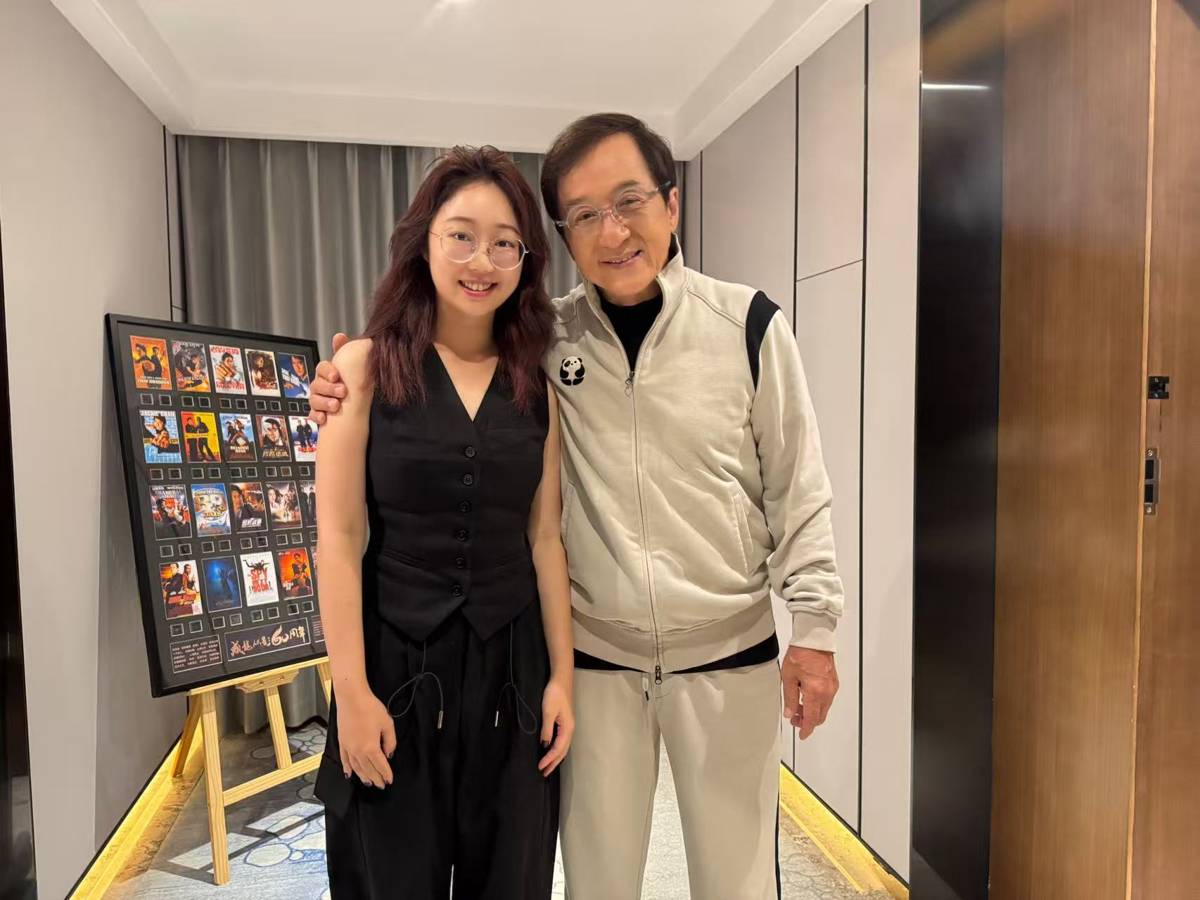 鲍海姗和成龙的合影。受访者供图