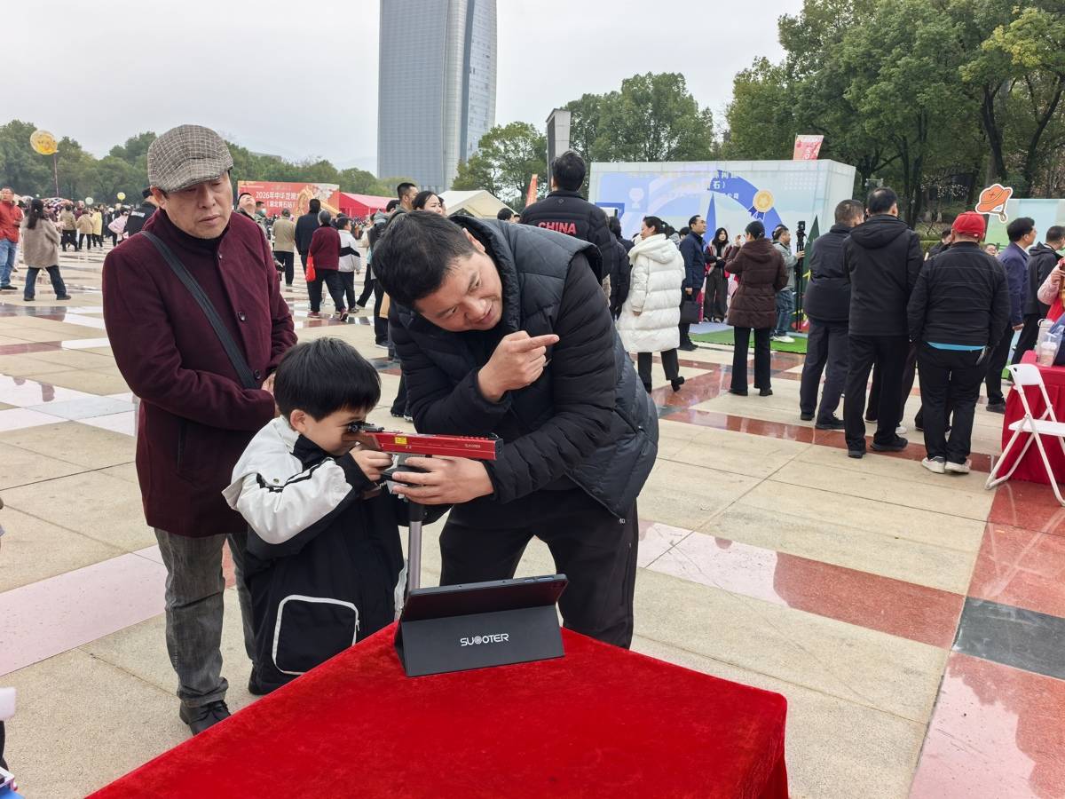 “来来来,我挑战一把!”壮硕的田先生在“挑战黄石腕力王”扳手腕擂台上连胜数人,众人齐声喝彩;在智慧骑行区,11岁的冯俊华一边快速骑行,一边紧盯眼前的大屏,上面不断闪烁着自己的速度、心率、热量消耗等数据;灯谜区则围满了老老少少,不断有猜中者揭榜兑奖……人民广场会聚而来的近万名市民,不仅可以参加热闹非凡的体育庙会,还能品美食、看非遗、体验休闲运动、观赏龙狮盛宴。