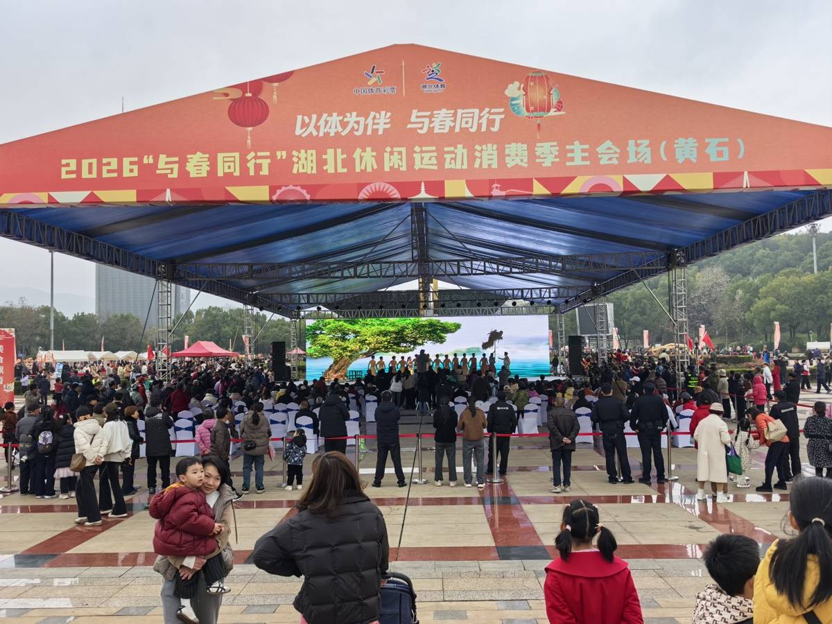 品美食、看非遗、观龙狮,体验休闲运动……2月28日,黄石市人民广场上人潮涌动,2026“与春同行”湖北休闲运动消费季启动式在这里举行,一场联动全省、跨越3个月的春季休闲运动消费盛宴拉开序幕。