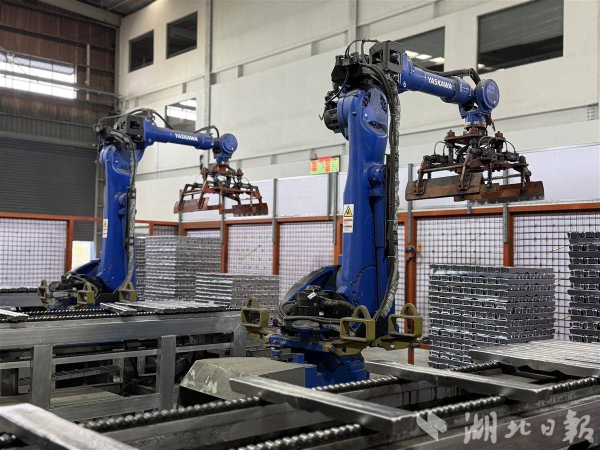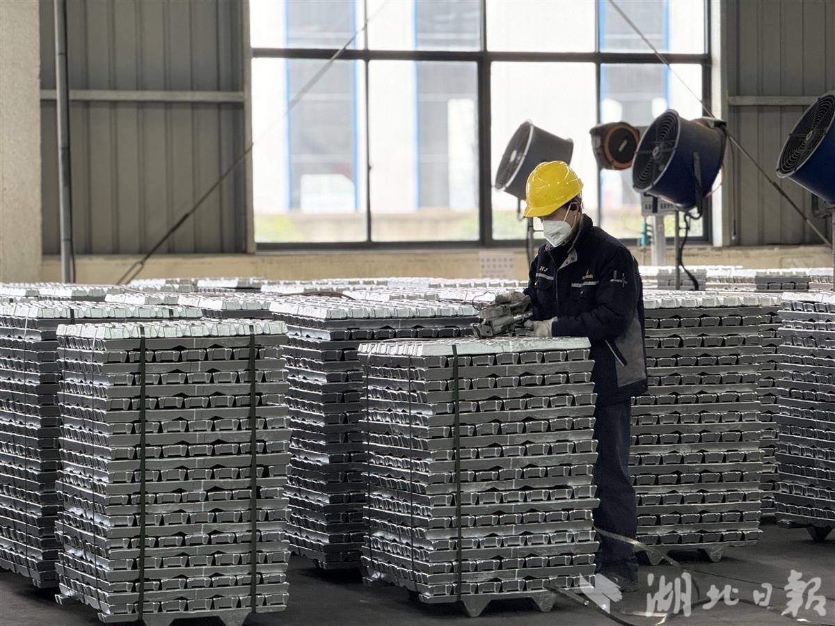 正月初九,湖北华劲铝业有限公司满员满产,熔铝车间炉火正红。巨大的机械臂精准投料,工人们专注地浇铸铝锭,一摞摞银光闪闪的产品整装待发。