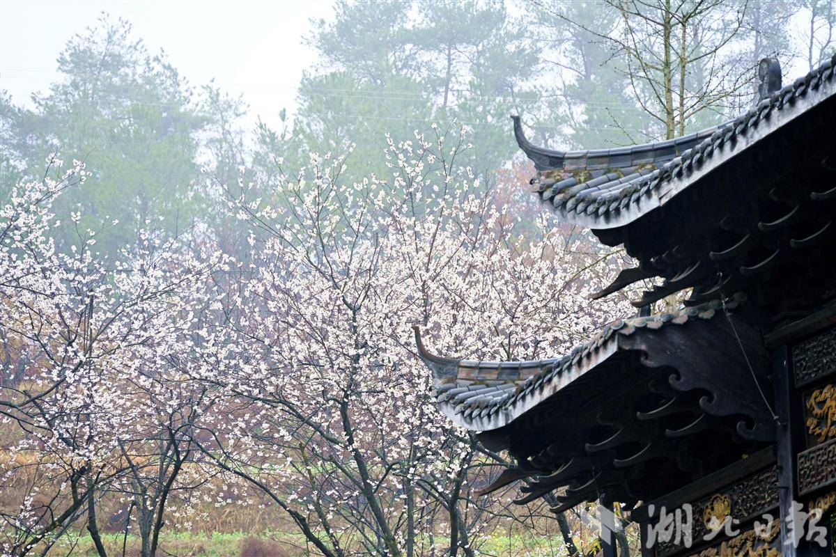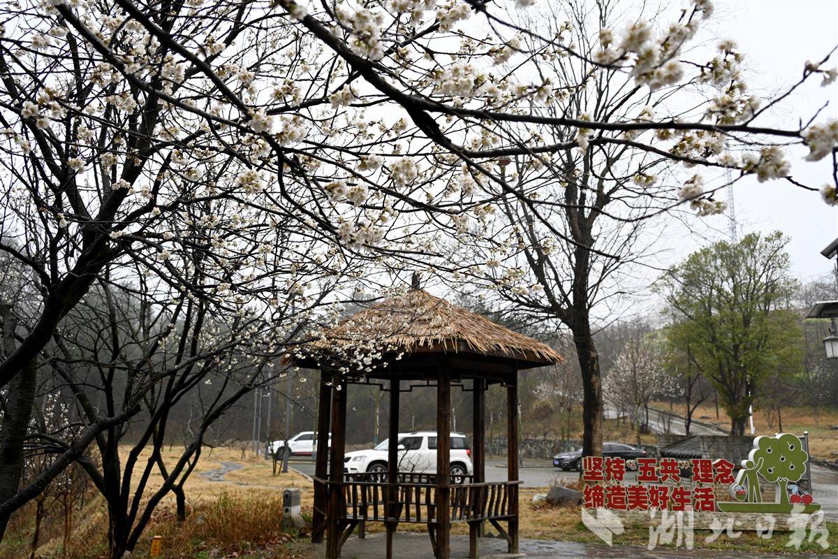 2026年2月28日在湖北省十堰市郧阳区茶店镇樱桃沟村拍摄的雨中盛开的樱桃花。湖北省十堰市郧阳区茶店镇樱桃沟村种植有几万株樱桃树,初春时节,樱桃花开、漫天飞雪,美不胜收,每天吸引大量游客前来观赏。(湖北日报通讯员 王涛摄)