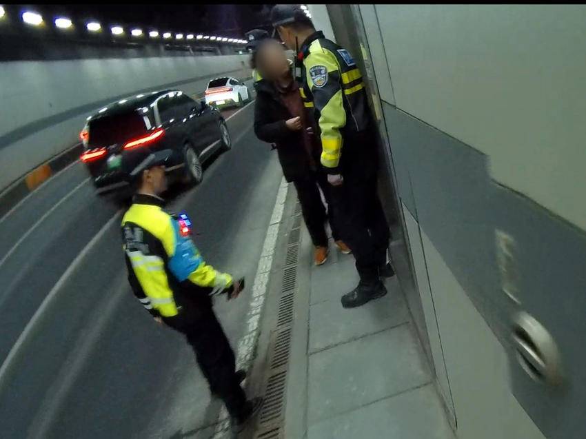 19时,汪一鸣一行人抵达隧道口得知前方情况后,选择徒步进入隧道赶往事发地。当老人看到是警察赶到现场后,才放弃继续前行的念头,在大家的护送下沿着检修步道逆行走出隧道。