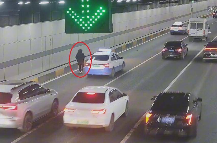 18时50分,东湖隧道管理中心中控室白雅雯通过调看路面监控发现老人刚刚进入隧道并没有走远,便立即调度九女墩岗亭工作人员刘光旭徒步从九女墩入口沿着最右侧检修步道跑步追赶,在隧道内300米处发现该老人。为避免老人发生危险,刘光旭穿过三股车道,将老人拉回最右侧检修步道上。可老人看到工作人员有些惊慌,只强调自己要回家,并没有听劝阻返回。